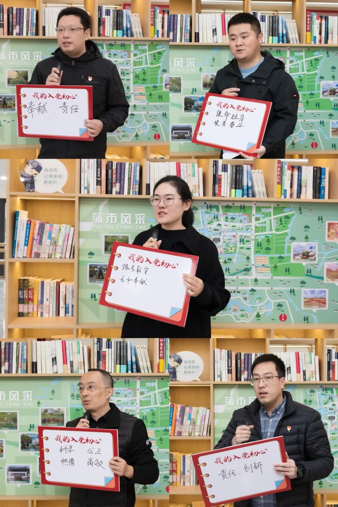 在蒲市村活動室,預備黨員們分享入黨故事、寫下入黨初心,紛紛表示將始終牢記自身黨員身份,不忘初心、砥礪奮進,在集團事業發展中主動挑大梁、扛重擔、作貢獻,以實際行動踐行黨的初心和使命。