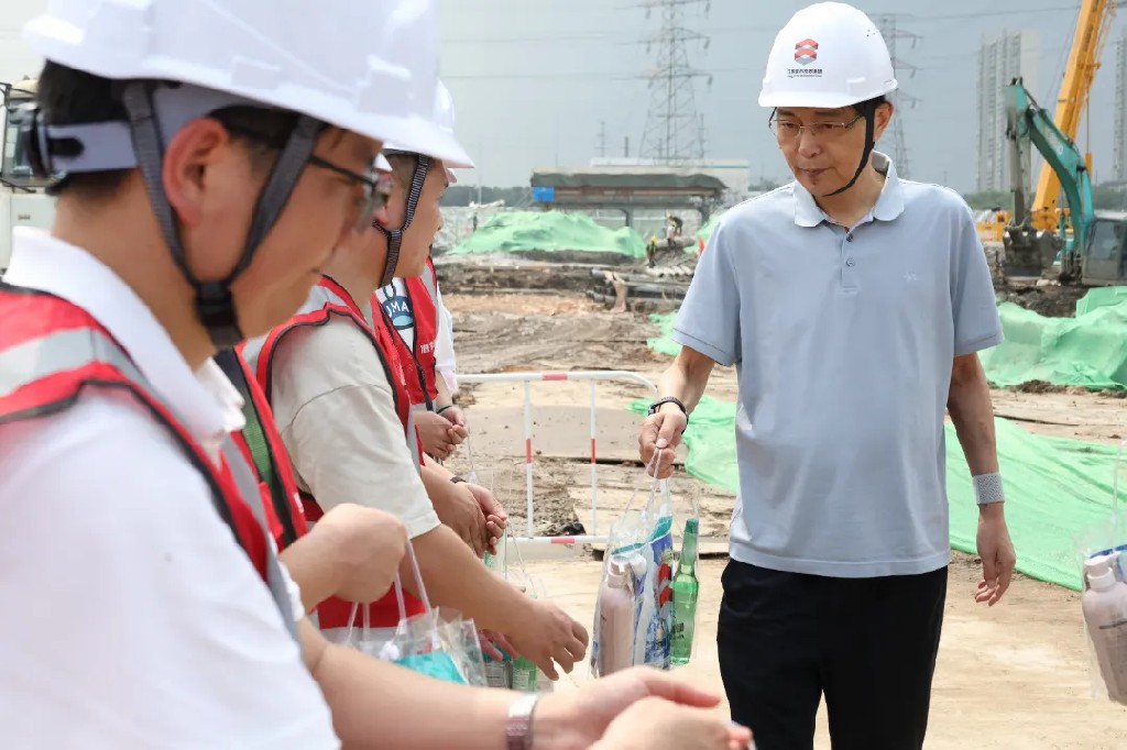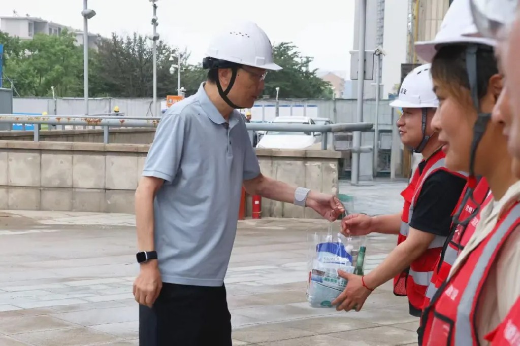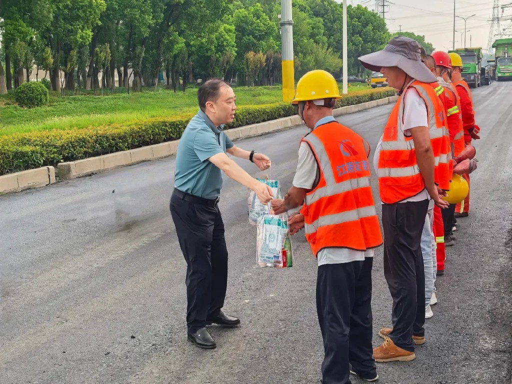 集團黨委副書記、總經理徐飛一行為大家送上了防暑降溫物資,并叮囑大家在高溫環境下作業一定要注意勞逸結合,做好個人防護,確保自身安全與健康。同時,要求項目負責人合理安排施工時間,避免高溫時段室外作業,切實將各項防暑降溫措施落到實處。