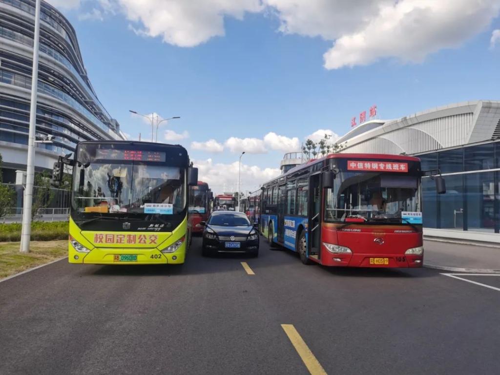 共投入27臺公交車,接駁約1050名乘坐球迷高鐵專列的淮安球迷往返高鐵站和體育中心,實現“高鐵站—賽場”零滯留。