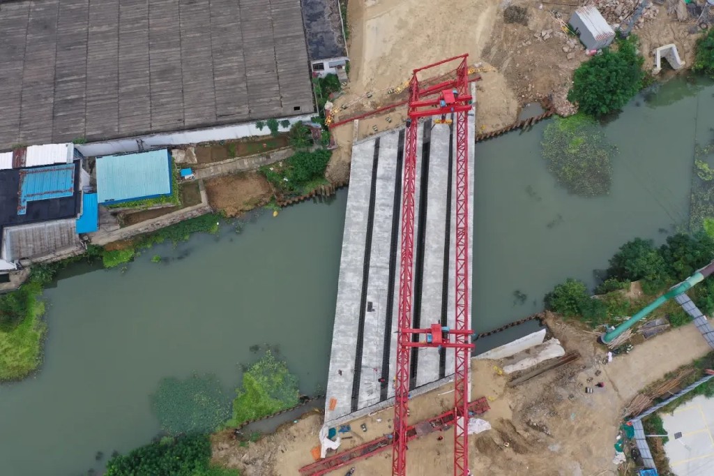 10月14日,隨著最后一片長35米、重達百余噸的箱梁在架橋機的巨臂下精準吊裝就位,江陰市新橋鎮新郁河橋梁工程成功實現全線貫通。這一里程碑式的節點,標志著大振路北延(大振橋)項目建設取得了最為關鍵的階段性勝利,為后續工程奠定了堅實的基礎。