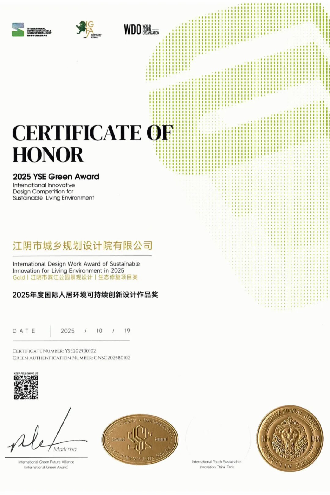 公園設計貫徹習近平總書記關于推動長江經濟帶“生態優先、綠色發展”和“共抓大保護、不搞大開發”的指示要求,立足場地特色,采取生態修復手段,協調工業文化保護更新和現代化城市景觀,打開城市沿江公共空間。濱江公園的建設是江陰沿江生態修復和海綿建設的示范點,更是江陰現代化濱江花園城市建設的一張名片。