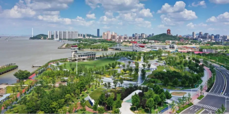 江陰市濱江公園為舊工業遺址改造的棕地生態修復工程,公園占地37.7公頃,主要包括船廠公園、鰣魚港公園、韭菜港公園、黃田港公園等4個主題公園。
